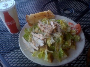 On this day, Tracy ordered the caesar salad and added a grilled chicken breast. It comes with chopped hearts of romaine, caesar dressing and shredded parmesan, with a slice of freshly baked sourdough on the side. Eddie’s also sells their homemade salad dressings.