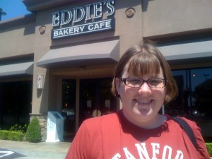 One of my longtime favorite Fresno lunch spots has to be Eddie’s Bakery Cafe on the northwest corner of Cedar and Herndon. My good friend Kelly Paramo first took me there circa 1995 when we were Fresno State undergrads and I’ve been loyal ever since. I like to go to Eddie’s with my wife Tracy (pictured above) to watch happy people walk out of the place while delicately carrying giant decorative cakes and fruit tarts in their arms.