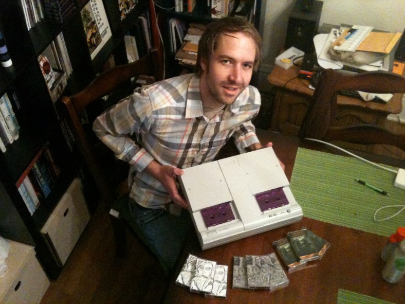 It was great fun to interview Daniel at the home he shares with his girlfriend, Melissa Olson. (The two collaborate as TeamTeam Creative Effort for multimedia projects, including the FUSE Fest 2011 visual campaign.) Daniel introduced me to his beloved Telex Copyette tape dubbing machine, a contraption he got for free from a friend’s grandfather, a pastor who used it to duplicate recordings of his sermons. The three of us had fun recording all the funky sounds the Copyette made throughout the dubbing process. We also recorded a bunch of sounds that didn’t make it into the final story: tape hiss, unspooling a cassette’s clingy magnetic tape, rewinding the unspooled tape back into the cassette with a pencil, the opening and closing of cassette tape boxes, etc.
