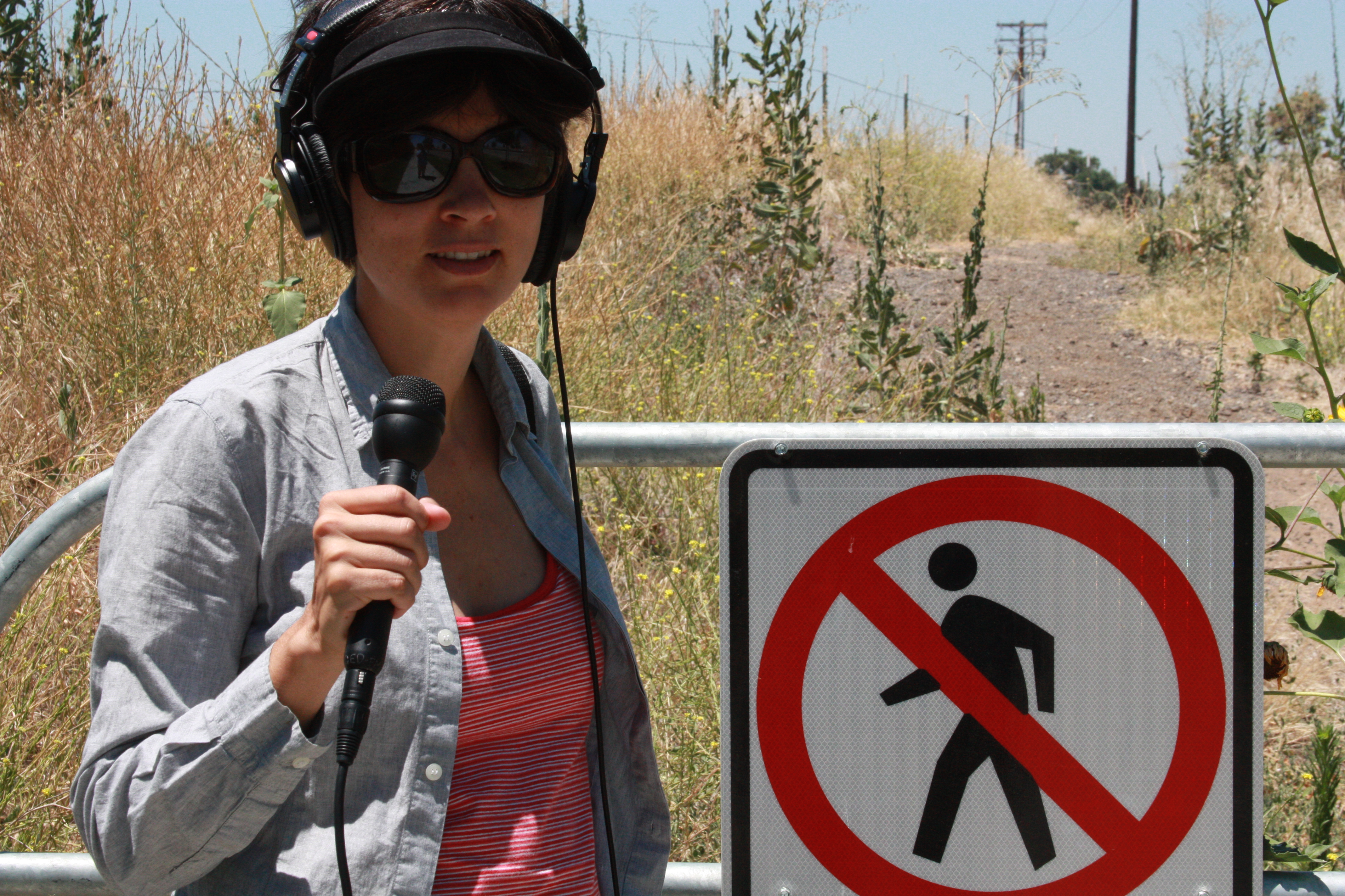 The story took us nearly two months to research and put together. Sasha handled most of the interviewing, and she wrote and voiced the radio piece. I handled most of the research– which included reviewing government documents and reports related to smart growth– and I produced a blog post that included a photo gallery with captions, an interactive map, links, and an unplanned but lively discussion with KQED listeners in the comments section. I also earned credit as a field producer on Sasha’s radio piece, as I oversaw the details of Sasha’s 4.8-mile walk from the Harlan Ranch smart growth development to the nearest supermarket. That’s Sasha with her radio gear in the photograph above, standing where the sidewalk ends.